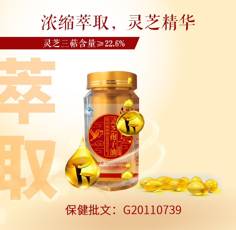 产品说明:健禾园灵芝孢子油采用大别山天然无污染的头道灵芝孢子粉经低温物理破壁、超临界CO2萃取而成,所有工艺均在同一厂房的一条生产线上完成,在产品的生产过程中无污染无氧化,保证了产品的品质。健禾园孢子油内容物为100%灵芝孢子油,不添加任何辅料,灵芝三萜高于22.6%,具有增强人体免疫力的功效。